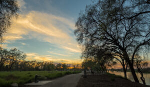 St. John’s River Trail is a scenic City of Visalia Treasure, inviting you to travel up to 4.4 level miles along its namesake river on a paved path suitable for people of all ages and abilities (and dogs, allowed on leash) to walk, hike, run, or wheel along while enjoying the views, reading the interpretive signs, admiring the areas where native trees and smaller plants have been restored, birdwatching, taking a break on a trailside bench, or visiting some of the adjacent parks via their short connecting trails. Early morning and sunset hours are most photogenic.