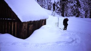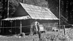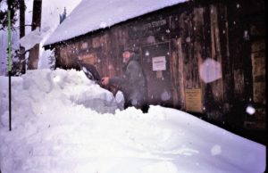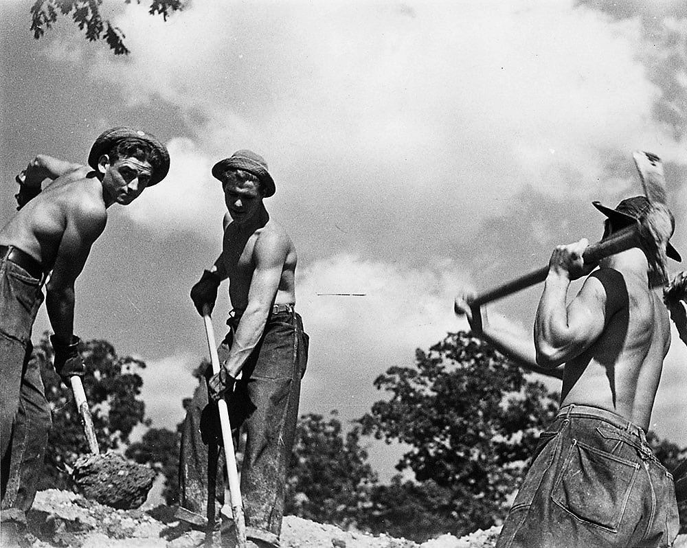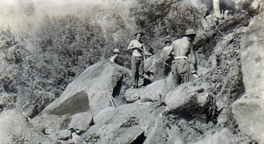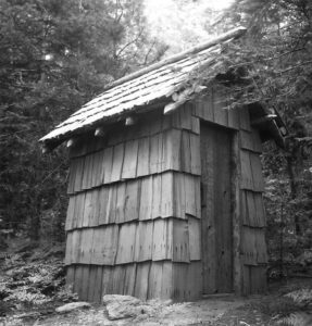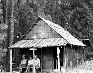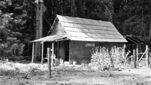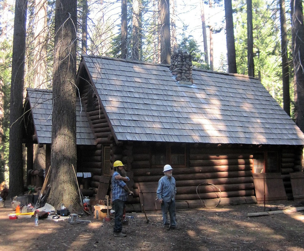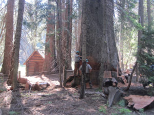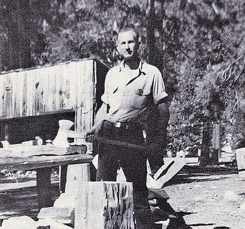 “In the summer of 1973, my backcountry crew and I were working at . . . Redwood Meadow . . . . An old fence, first built by the CCC . . . had long ago fallen into disrepair, so we started . . . replacing the rotten posts and stringing new wire. One afternoon . . . we uncovered an old metal bin [and] . . . found the carpentry tools the CCC had used to build the cabin at Redwood Meadow: double-bit axes, log carriers, drawknives, and a brace and bits. Their wooden handles were still dark from the oil and sweat of men working there thirty-five years earlier.” — Steve Sorensen, 2018