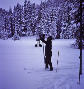 “During the trail crew visits . . . [w]ood was bucked up, split, hauled, etc. for the trail crew, Hockett ranger, wilderness seminar, and snow survey. Two new hitching rails were constructed . . . . One of the public outhouses was moved here at Hockett Meadow. Several days were spent . . . doing trail work (raking rocks) and on the new bridge near Horse Creek. ” — Lorenzo Stowell, Hockett Mdw. Ranger, 1992