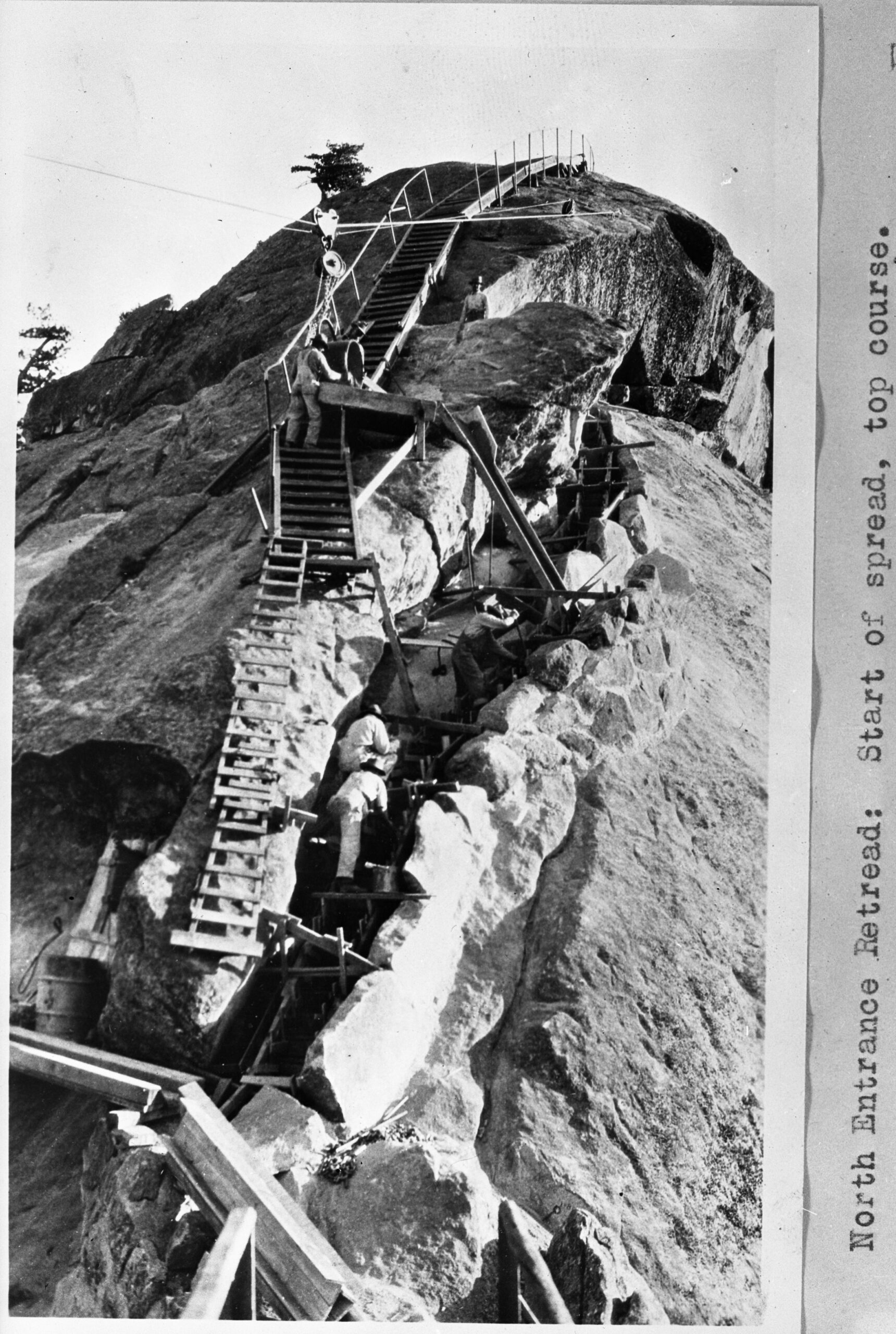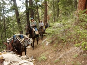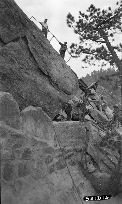 Additionally, crew leaders must possess and maintain an NPS Blasters License because they serve as Blaster in Charge to remove obstacles such as logs and rocks from trail tread, to quarry stone for masonry work, and to establish trail bench in bedrock areas. They also assist in mule and horse packing operations by riding on mountainous trails, preparing supplies and materials for mule transport, tying on loads, and leading pack animals. To move big boulders and logs in the wilderness, they set up and use human-powered winches and rigging such as high-lines.