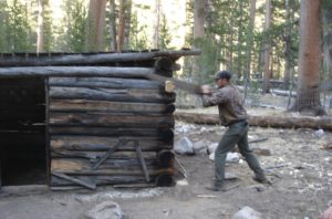 Backcountry Wilderness rangers also do their own cooking, clean and maintain their cabins and barns, trap hordes of invading mice, cut firewood for their cabin stoves, build and repair fences, doctor and shoe horses and mules, help to clear and maintain trails, and assist park scientists with projects such as residual biomass monitoring on meadows. Rangers remove hundreds of pounds of trash from trails and campsites, break up illegal fire rings and restore abused camp areas, look for lost stock and missing hikers, conduct hunter patrols in the fall, and rarely work an eight-hour day, as they are on call as long as they are in the backcountry.