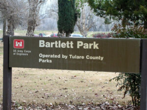 Bartlett planned and supervised much of the work of developing and landscaping the new 34-acre park for the public — clearing brush, enhancing the swimming area, building picnic tables, planting trees and shrubs from the Mooney Grove nursery, constructing two dressing room buildings, and digging wells. The new Tule River Park was very popular, so the next year, a caretaker’s cottage was built, along with a pavilion, tables and seats set in concrete for 400 people, fencing, and a rock dam to increase the depth of water in the 400 foot long swimming area.