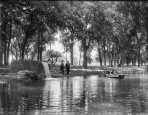 By the time Bartlett retired from the mining operation in 1921, the Forestry Board was in charge of two big parks, having been given the land for 52-acre Cutler Park in 1919. Another park was added in 1923, thanks in large part to Bartlett’s efforts. The Porterville Chamber of Commerce sponsored a successful fundraising drive to buy land along the Tule River for a city park, with the understanding that it would be donated to the County and the Forestry Board would develop and maintain it. The goal was to acquire the best, most easily accessible place to swim and to beat the summer heat.