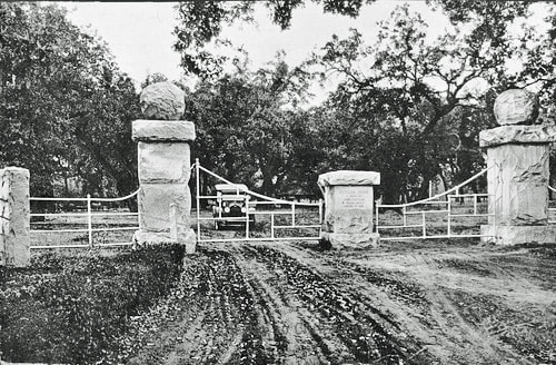 “Beginning with two massive stone pyramids covered with lichen and flowers at the south entrance near Success bridge, wild shrubs and flower gardens line either side of the driveway for several hundred feet, with shaded table[s] and seats for visitors. The boundary fences are planted with wild clematis.”– W. P. Bartlett