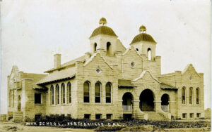 “Although the Bartletts had no children, they were very much interested in their community’s schools. . . . A few years after Bartlett moved to Porterville bonds were voted to build a new High School. Mr. Bartlett suggested that the best building for the money available could be built of native granite and he offered to oversee the job and guarantee the costs.” — Los Tulares #44, June, 1960